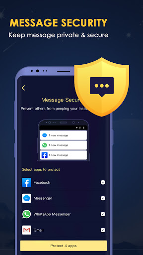 App lock supports app locker with fingerprint lock, password lock, pattern lock. Providing you with fluent lock experience with privacy protection. Guard your private data to keep your phone and app safer. You don’t have to worry about others messing up your phone without your authorization. App lock also provides battery saver, phone cleaner, antivirus, and more functions!