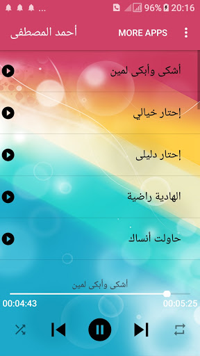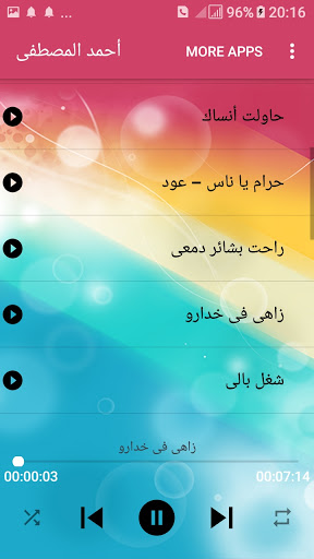 أحمد المصطفى يطرب مسامعنا باغاني سودانية رائعة مقدمة لكم في تطبيق اغاني أحمد المصطفى يشتغل ب الخلفية و بدون انترنت، تطبيق دبكات أحمد المصطفى بدون نت يحتوي على جميع أحمد المصطفى ، استمتعوا بها و لا تنسوا مشاركتها مع اصدقائكم محبي أحمد المصطفى.