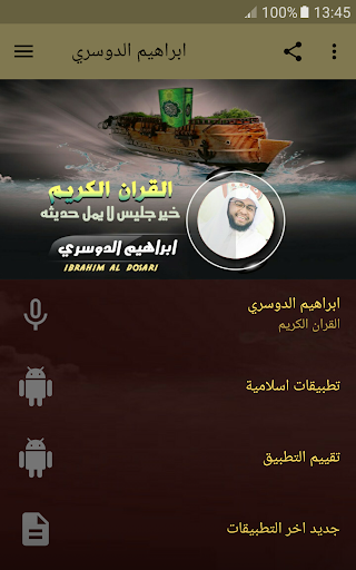 ◾️ القران الكريم بصوت ابراهيم الدوسري تطبيق رائع جداً يحتوي هذا التطبيق على تلاوات القرآن بصوت جميل للقارئ ابراهيم الدوسري.