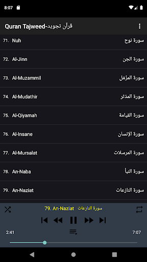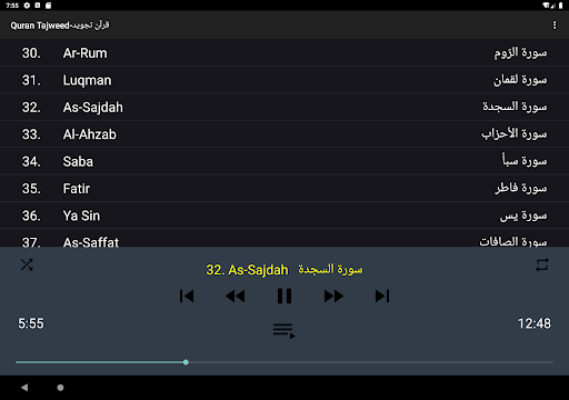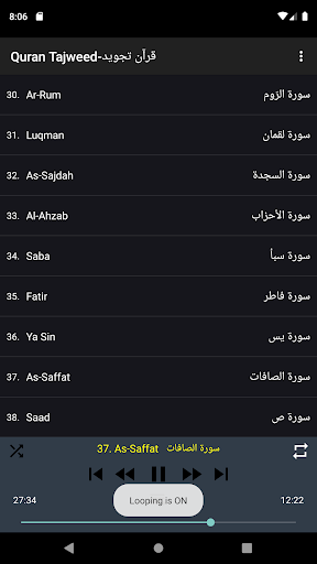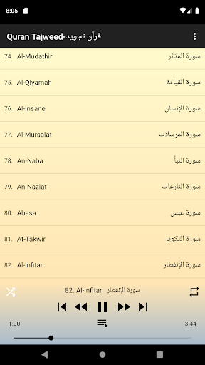 - Continuous repetition of any surah you want.
