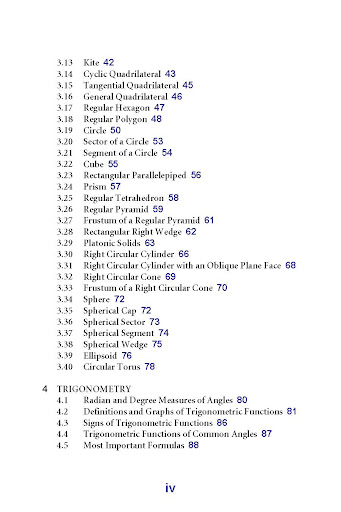 This handbook (by Alex Svirin Ph.D.) is a complete desktop reference for students and engineers. It has everything from high school math to math for advanced undergraduates in engineering, economics, physical sciences, and mathematics. The ebook contains hundreds of formulas, tables, and figures from Number Sets, Algebra, Geometry, Trigonometry, Matrices and Determinants, Vectors, Analytic Geometry, Calculus, Differential Equations, Series, and Probability Theory. The structured table of contents, links, and layout make finding the relevant information quick and painless, so it can be used as an everyday online reference guide.