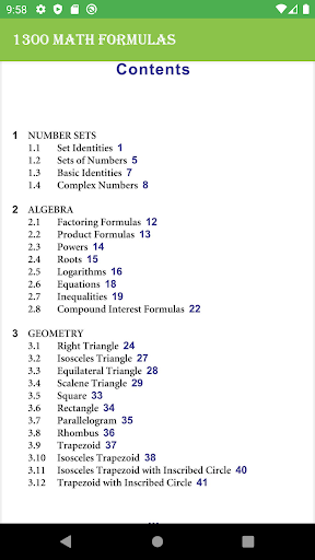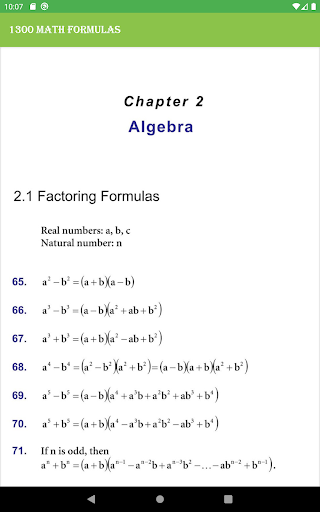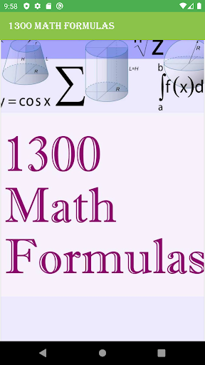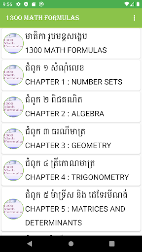 ក្នុងកម្មវិធី 1300 Math Formulas ត្រូវបានប្រមូលផ្កុំរូបមន្តរបស់គណិតវិទ្យាទាំងអស់ ហើយវាមានភាពងាយស្រួលដាក់តាមខ្លួន។