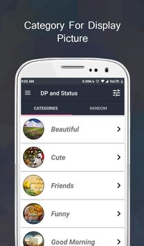 Divide in two main categories of status for whatsapp and dp for whatsapp.