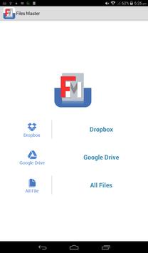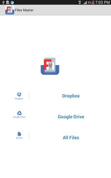Files Master is a FREE files manager app, it includes features like connectivity to Google Drive and Dropbox cloud services, transferring files between cloud services easy to maintain files from different file storage system(Cloud), the screens are segregated neatly to help you manage files
