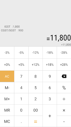 Calculate GST: Enter amount and set custom tax rate along with preprovided 3%, 5%, 12%, 18% and 28%. Get GST calculated as you type in.