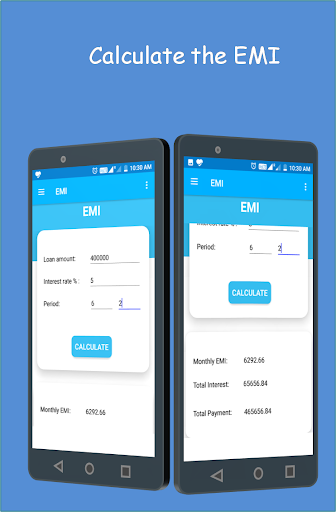 > By entering the Loan Amount, Rate of Interest and Period users can calculate Monthly EMI along with Total interest ad Total payment.