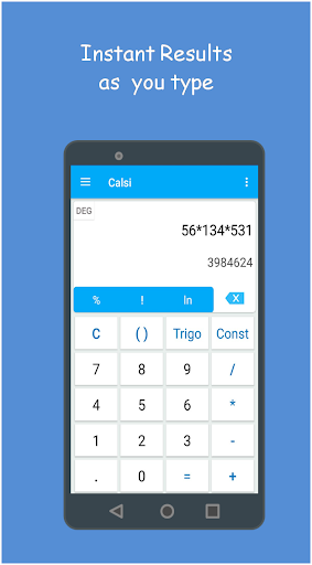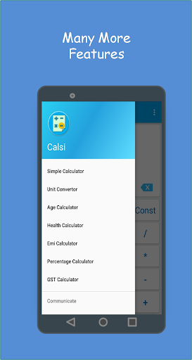 Calsi calculator app focuses on creating a better calculation platform for the users. The smooth and simple user interface makes the Calsi calculator app user friendly. This Calsi calculator also has some scientific functions that makes it a well versed calculator app. And this calculator app also offers many other essential features like GST calculator, Unit converter, Percentage calculator, BMI calculator, EMI calculator and Age calculator covering every aspects that a user comes across in his daily life. Thus, Calsi can also be referred as 'All in one calculator app'.