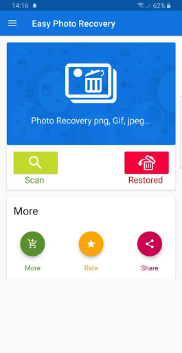 Simple and useful photo recovery. Simply open Easy Photo Recovery, press scan and wait for the application to scan all the images. Then select the deleted image to restore and click restore. It will appear directly in the gallery of your device.