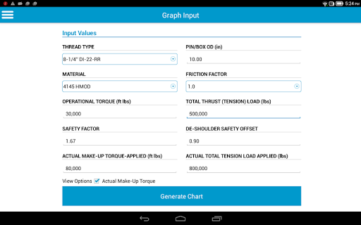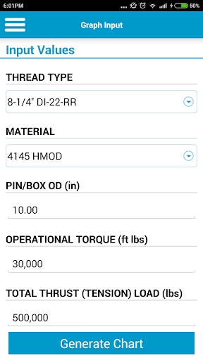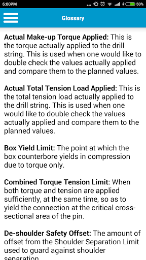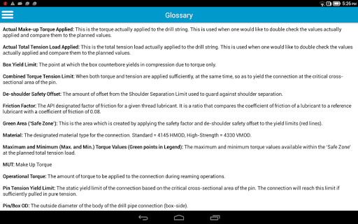 This app allows you to calculate torque and tension loads to be applied to a raisebore drill string during reaming operations.