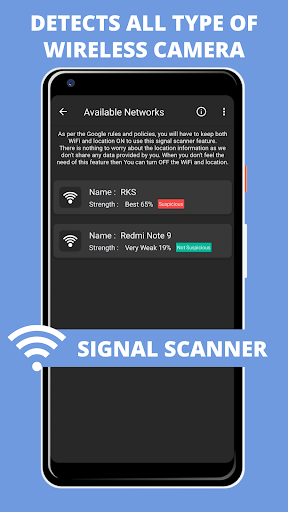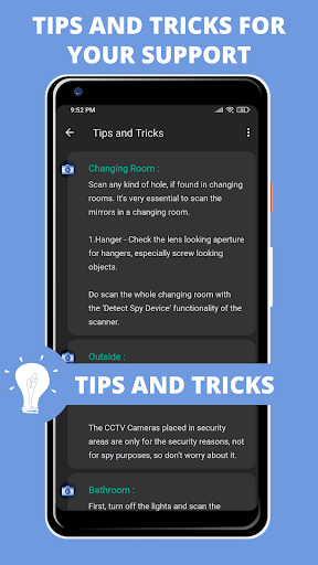 This app can detect electromagnetic signals emitted from electrical devices like a camera. All you have to do is ON your smartphone and open the 'Detect Device' option of the app and bring it close to any object that you have a doubt about. For example TV, AC, Mirror, Smoke detector and also do not forget to scan the bathroom.