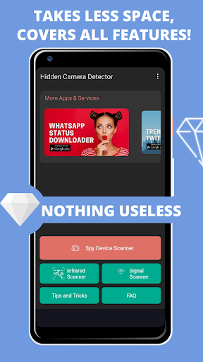 This app analyzes the magnetic activity around the device. If magnetic activity seems similar to that of a camera, this app will beep and raise an alarm for you so that you can further investigate.
