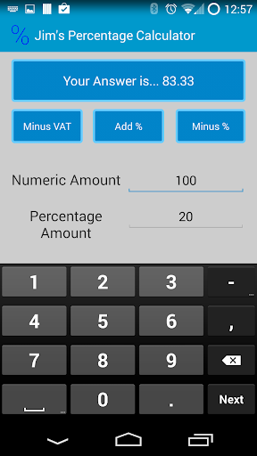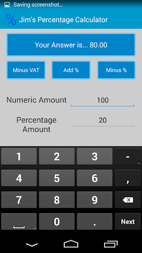 This calculator allows you to work out percentages, and then gives you the option to export the answer, saving the effort of having to switch between apps.