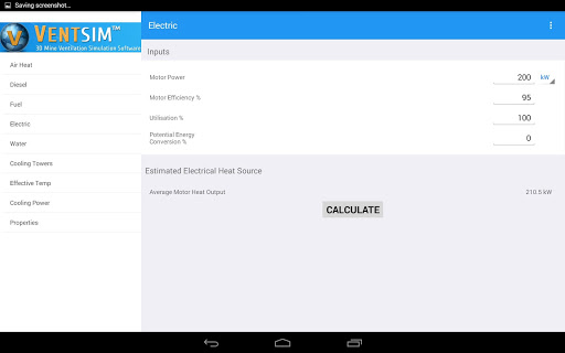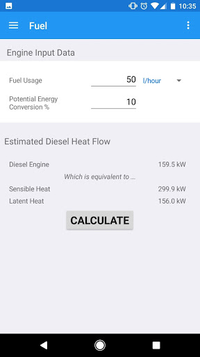 Similar to the diesel engine calculator, this allows the user to estimate the heat emitting from an electric motor, based on its duty cycle and conversion of work into useful energy