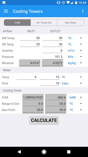 A tool to assist in calculating the performance of cooling towers. The calculation tool can be directed in 3 ways – calculate factor of merit, calculate output air temperature, or calculate required amount of chilled water
