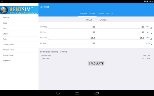 Vent Calculator helps in calculating thermodynamic inputs for ventilation modelling. You can quickly establish required cooling, heating or moisture loads.