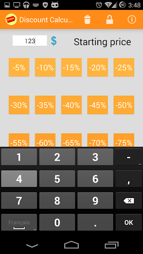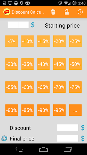 Calculate quickly your discounts during the sales with this little app ! tag : calculator, discount