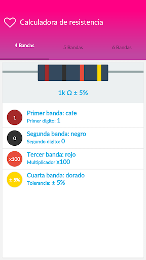 Simple application to know the value of resistance along with their characteristics : tolerance and temperature coefficient. With ability to solve the colors of 3 types of resistors 4, 5 and 6 bands .