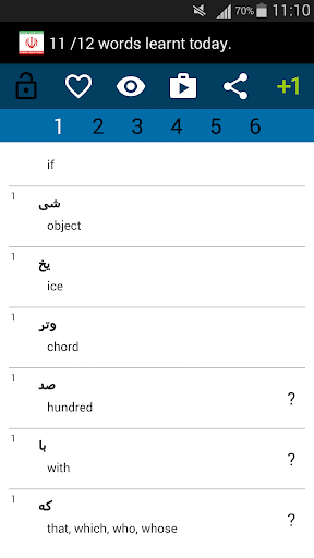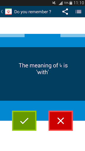 Pace yourself as you go through the almost a thousand common and popular Persian words available in the app. In just a matter of weeks, you will have an essential knowledge of the Persian vocabulary !
