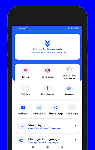 Status All Downloads allows you download/save every status in your mobile app. Save images status, Video Status from your favorite apps like WhatsApp, Instagram, Facebook, Tiktok, Like,Twitter. Status All Downloads allows you to download all status in one single click.