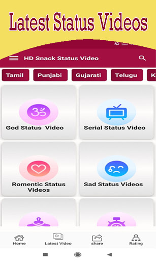 This App Our Own Status Video Creativity. User are get fast response For This App. Different Types Of Categories Status Video In this App like,