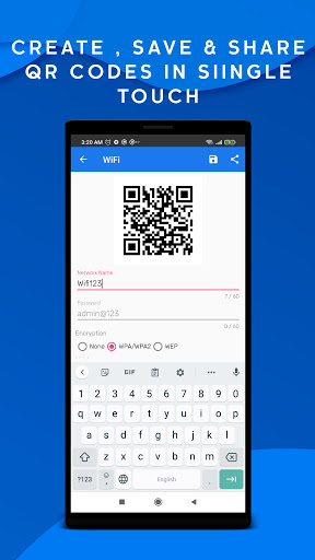 Other functionality: Create QR,Share your contact info via QR.