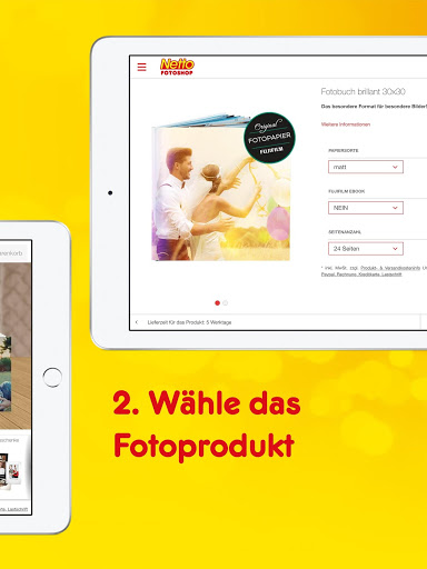 Jetzt können Sie ganz bequem vom Smartphone oder Tablet Fotoprodukte bestellen. Egal ob Fotobücher, Fotokalender, Leinwände, Fotogeschenke oder viele andere Produkte - die Bildauswahl an Ihrem Gerät ist beinahe grenzenlos.