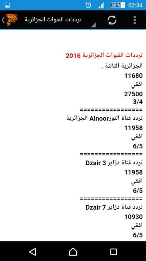This application shows you new and old frequencies on the satellite Nilesat 7 degrees West as the latest updates, set your device to receive these channels by entering frequency receiver,