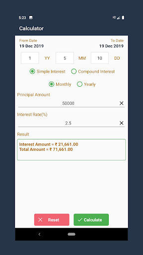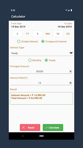 * Simple And Compound Interest Calculator * Loan Calculation(Monthly & Yearly)