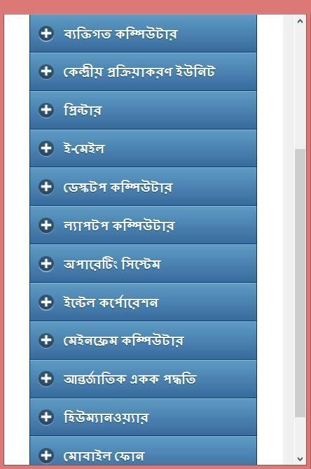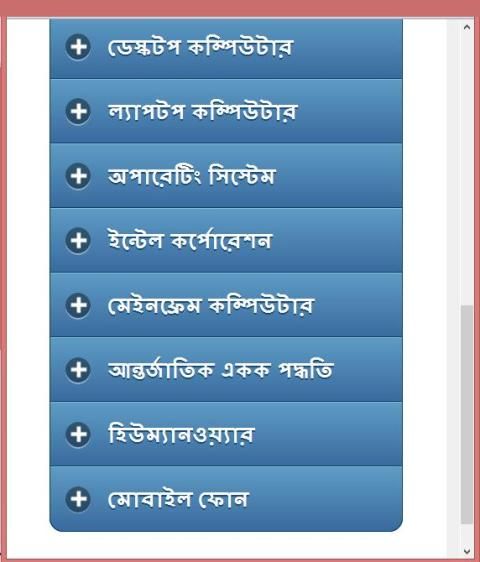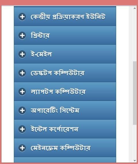 These are the things the app hacchehkampiutara, history, the history of computers, software innovation, the history of Bengali, computer system, computer type, ayabakasa, calculators, computer science, computer science, history, goals, branch, discrete mathematics, programming languages, operating systems, , computer networks, databases and information systems bringing, personal computers, personal computers, history, types, hardware, software, image scanners, central processing unit, a central processing unit, history, transistor and integrated circuit CPUs, design and implementation, performance speed , optical disk, motherboard, computer monitors, systems, software, keyboard, (computers), printers, printer, printer type, technology, spreadsheets, databases, database management systems, web browsers, e-mail, e-mail, spelling, e mail addresses, desktop computers, desktop computers, history, prosperity and development, Types, local Area network, history, information prayuktilyapatapa computer, laptop computer, history, types, Elements, battery and power supply, facilities, difficulties, security and privacy, the main brands and manufacturers, netbooks, modems, routers, joystick, microphone, oyebakyamaaparetim sistemaaparetim systems, bahuprogramim, the programming language, definitions, objectives, contents, internet, Intel Corporation karporesanaintela, corporate history, products, and market history, corporate functions, microprocessor, Apple inakarporetedameinaphrema kampiutarameinaphrema computers, computer software, Microsoft Windows, Word processor, Microsoft Corporation, history, aibiemaantarjatika single paddhatiantarjatika single system, bits, bytes, kilobytes, megabytes, gigabytes, terabytes, trillion, smart card, ekakahiumyanaoyyarahiumyanaoyyara, hard disk drives, multi media card, USB flash drives, computer memarimobaila phonamobaila phones, digital cameras, Mac OS, Linux, application software.