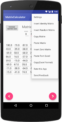 Copy matrix from Excel and simply chose 'Paste From Excel' to paste a matrix and perform calculations on it or