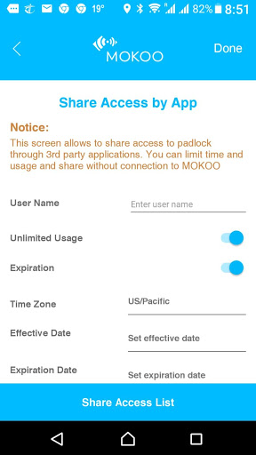 You can set time limits and number of lock openings on the apps by either sending a shared code to their own Mokoo app, or just simply send them an encrypted password for combination opening.
