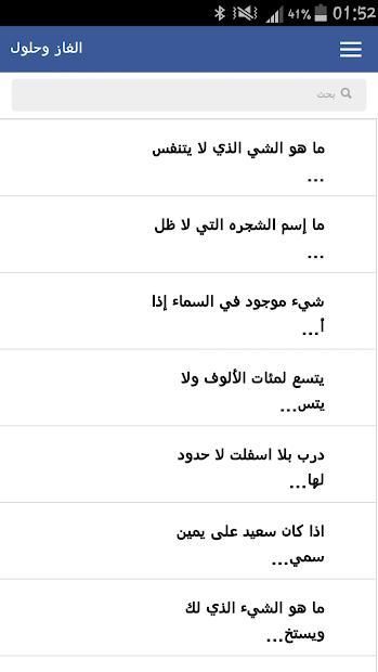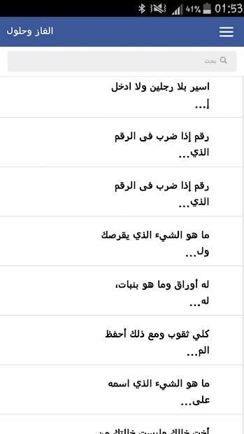 تطبيق الغازوحلول يتوفر على الغز متنوعة منها الغاز صعبة والغاز صعبة جدا و الغاز للاذكياء مع الحل وحزازير، تستطيع من خلالها اختبار ذكاء والمعلومات لديك .