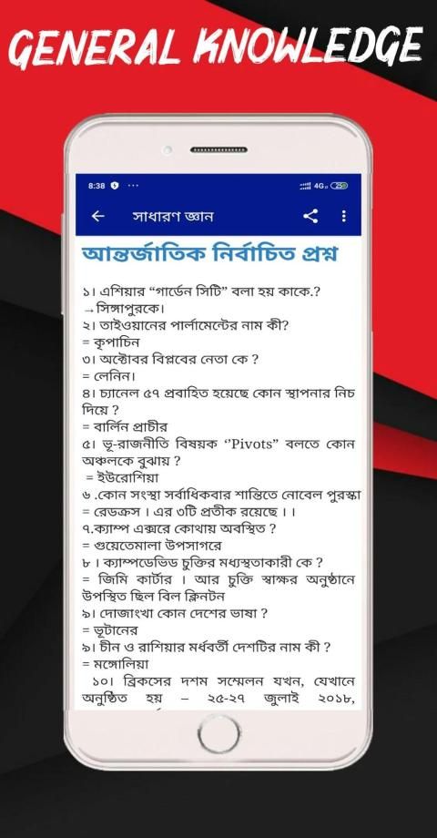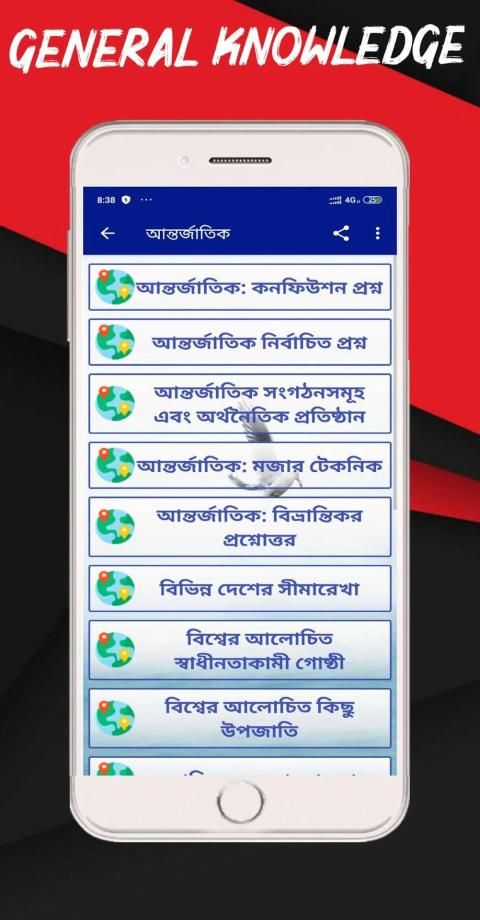 General knowlege app or gk app for সাধারন জ্ঞান আন্তর্জাতিক একটি বাংলা শিক্ষামূলক অ্যাপ। সাধারণ জ্ঞান আন্তর্জাতিক বিষয়াবলী নিয়ে তৈরি করা হয়েছে অ্যাপটি। বিসিএস , চাকুরি, ভার্সিটি ভর্তি পরিক্ষা সহ যাবতীয়পরীক্ষার উপযোগী করে তৈরি করা হয়েছে সাধারন জ্ঞান বাংলাদেশ ওআন্তর্জাতিক বিষয়াবলী। রেগুলার কারেন্ট অ্যাফেয়ার্স পড়া উচিত নতুন বিশ্ব সাধারণ জ্ঞান (shadharon gen) সম্পর্কে জানতে চাইলে।