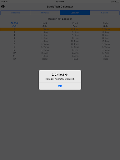 - To-Hit and Hit Location calculator, for both Melee and Weapon attacks.