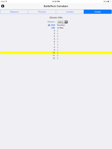 * Hit location tables and cluster hit tables for missiles, with integrated dice rolling.