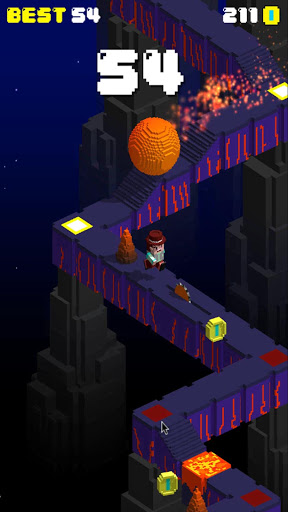 Tap the screen to turn and jump, double tap to double jump. Watch out for the fire pits and deadly obstacles. Collect coins to unlock awesome new characters. Challenge your friends to beat your score.