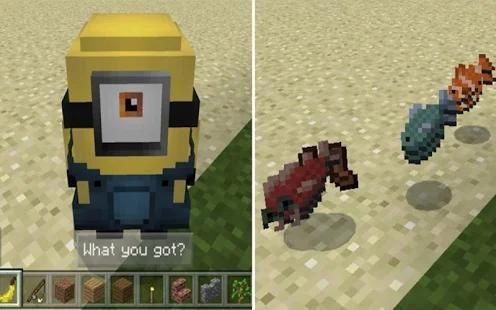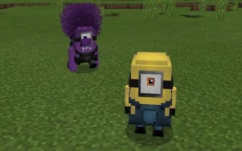 Minions are yellow, small, cylindrical creatures which are most known for their appearance in the Minions movie. This addon adds the minions (evil ones included) and Gru to Minecraft PE. The minions are very cute and can be used for multiple things. For example, you can tame them, have them fight for you or you can send them away on missions such as hunting or to go fishing.