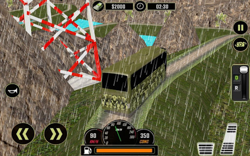 Fasten your seatbelt, grab the steering of your army bus and drive army training bus on offroad tracks, hill climb, this track is very dangerous for driving long vehicles and intense weather make it more challenging and difficult to drive army loaded bus on curvy, slippery and deadly off-road tracks.