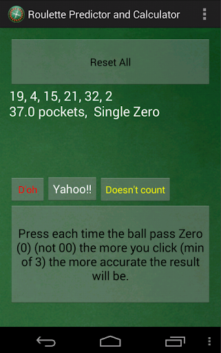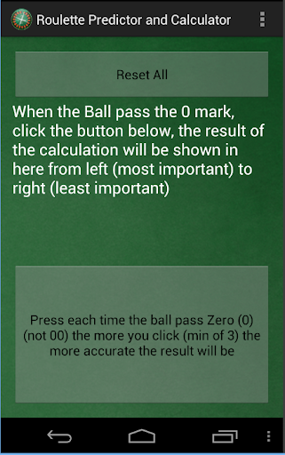 Roulette Predictor & Calculator, will give you a set of prediction to the most REASONABLE/THEORETICAL numbers that are about to come out.