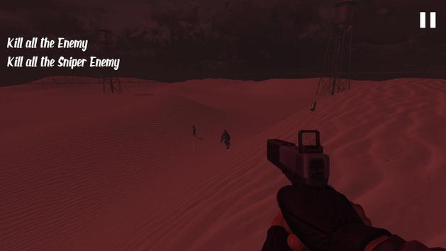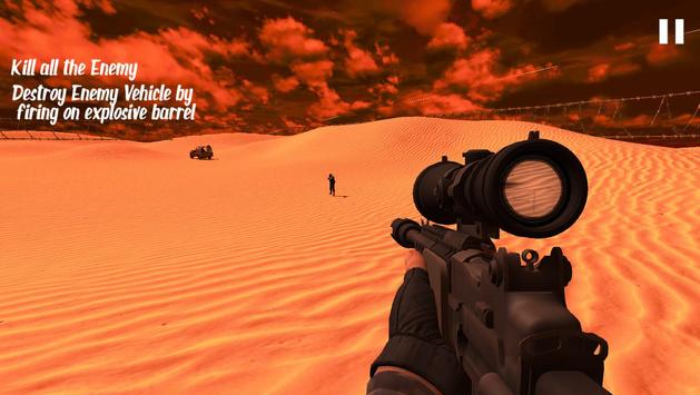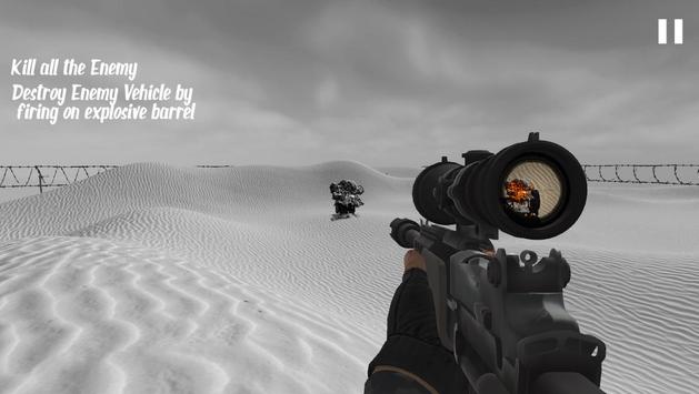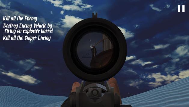 A high rank officer with code name Agent 004 assign special mission. No one knows about this special mission except higher authority. With highly sniper skills and ability to fire bullet with long shoot a big advantage on agent 004 sides. Enemy cover all areas of the desert with special weapons and ammunition system. Find the cover before hitting the enemy otherwise they blow your head with sniper bullet. Keep an eye on the enemy snipers while evacuating the area from ground enemies and destroy enemy vehicle with long range sniper shoot and blow the barrel otherwise difficult to destroy enemy vehicle.