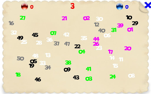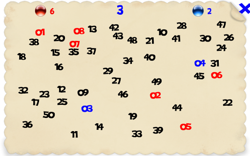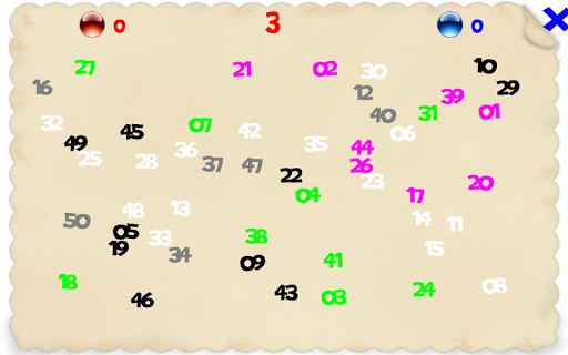 VS mode: each player has 5 seconds to find all numbers that he/she can find out. The fight will be end when the final number ( 50 - 100 - 150) has been found. The winner is who have found more numbers than other.