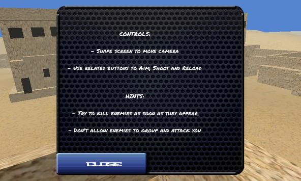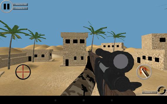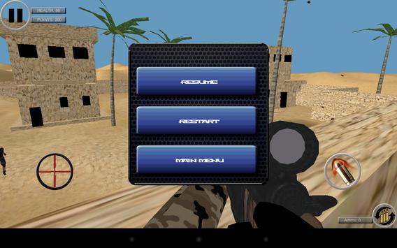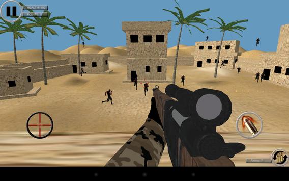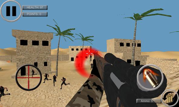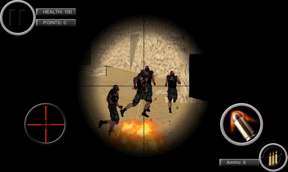 are sniper in the middle of desert. Your army has call you on duty and shipped you into the battlefield. Your goal is to protect your country from terrorist and make sure you are your sniper gun stay calm in this times of war.