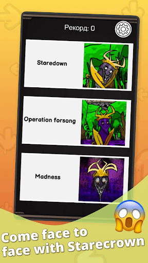 Fnf mod starecrown is the biggest fan of the boyfriend talent who flew in from another universe. Fnf starecrown battle is very noticeable and unusual - he is purple, very thin, tall, dressed in yellow clothes. You definitely won't confuse him with any other character. He loves to bulge his eyes and occasionally does this during music battles. Although he has a rather awkward appearance, this does not prevent fnf vs starecrown from entering battles. He loves the creativity of his boyfriend so much that for a very long time he gives him a solo to sing, enjoying his voice. And only after he enjoys the boyfriend's voice in the first part, starecrown fnf mod enters himself.