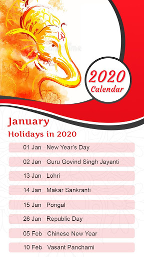 2020 Calendar & Holidays App Contains High Quality Images of 2020 Calendar, Holidays list 2020, Festivals list 2020, Panchang details, Auspicious days / Shubh Muhurat For India 2020