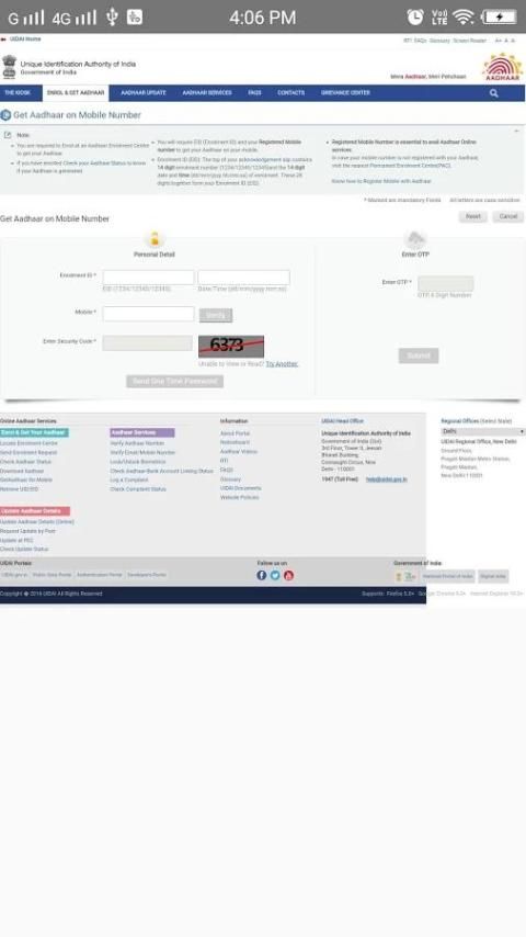 ♦ كيفية إضافة رقم الجوال في بطاقة Aadhaar اون لاين بدون OTP