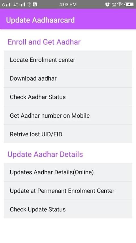 يسمح هذا التطبيق للمستخدم إمكانية إجراء العمليات الرئيسية المتصلة Aadhaar. في هذا التطبيق يمكنك أن تجد مركز التسجيل في منطقتك. والتحقق من حالة وبعد جيل من Aadhaar الخاص بك يمكنك تحميل البرنامج. يمكنك أيضا تحديث Aadhaar الخاص بك من هذا التطبيق، وكذلك التحقق من وضعها بعد تحميل ملف PDF Aadhaar الخاص بك. يمكنك أيضا أن تكون قادرة على الاتصال بالسلطات مباشرة من هذا التطبيق. في مركز التسجيل يمكنك أن تجد الوحيد وسط Aadhaar دائم لذا يرجى وضع علامة على مركز دائم الوحيد في تصحيح / تحديث Aadhaar الخاص بك يمكنك تصحيح الاسم والعنوان وتاريخ الميلاد، ورقم الجوال والمساواة بين الجنسين يرجى مراجعة التعليمات قبل تحديث Aadhaar الإلكتروني المسجل رقم الهاتف النقال الأكثر أهمية لتحديث / تصحيح Aadhaar الخاص بك.