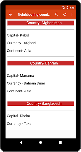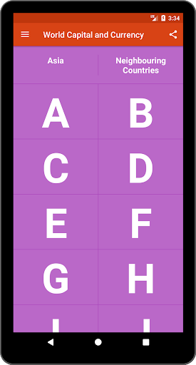 This app will provide you the information regarding all the countries in the world, their capitals and their currencies. Country names are listed in alphabetical order.