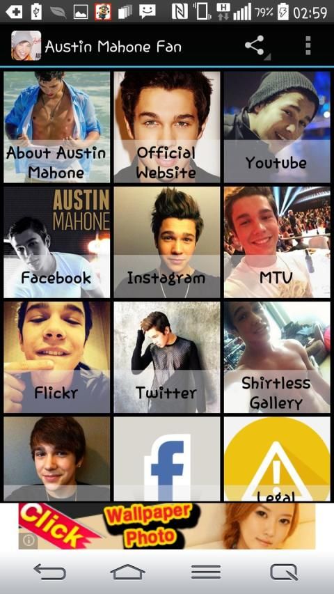 HURRY UP: IF YOU ARE AUSTIN MAHONE FAN, GRAP THIS APP NOW --Austin Mahone is one of the most talented, most liked, most listened to, most followed and most impressive artists today!With this Austin Mahone Fan App, you'll get;About Austin MahoneAustin Mahone Music VideoPhoto GalleryShirtless GalleryOfficial WebsiteTwitterFacebookand more !!!!Pick the Austin Mahone Fan app today and enjoy!