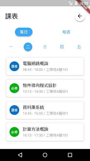 這個 App 整合 了 ecourse2 、 課表 行事曆 以及 以及 交通 , 讓 您 您 用 瀏覽器 瀏覽器 也 一覽 課程 和 中 的 的 種種 資訊 哦 哦。