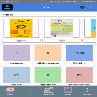 A mobile based android application by Department of School Education, Govt. of Chhattisgarh, app has been created for this purpose using which a lesson can be either read or heard as there would be voice over. Wherever it is relevant, animation shall be shown. All activities in a text book, shall be video recorded and delivered through App. A lesson shall have assessment questions and student can take a test. Following are the services provided by this application